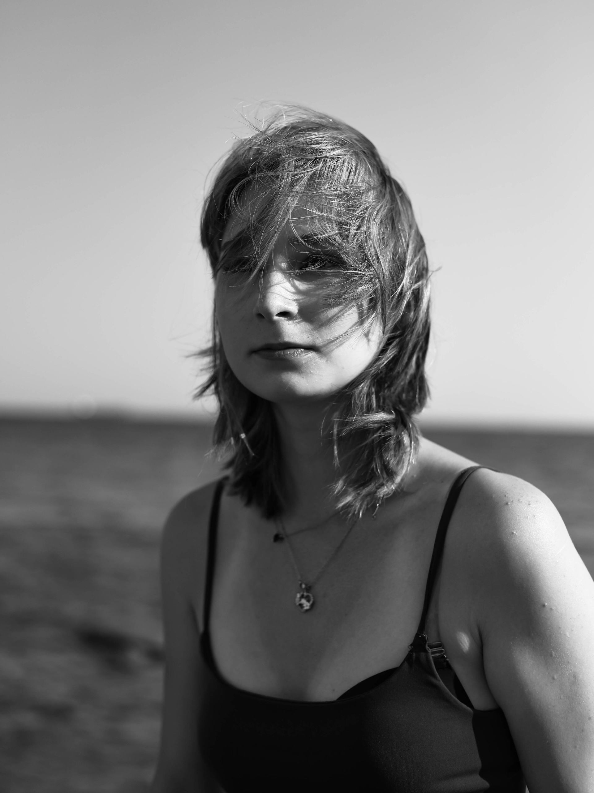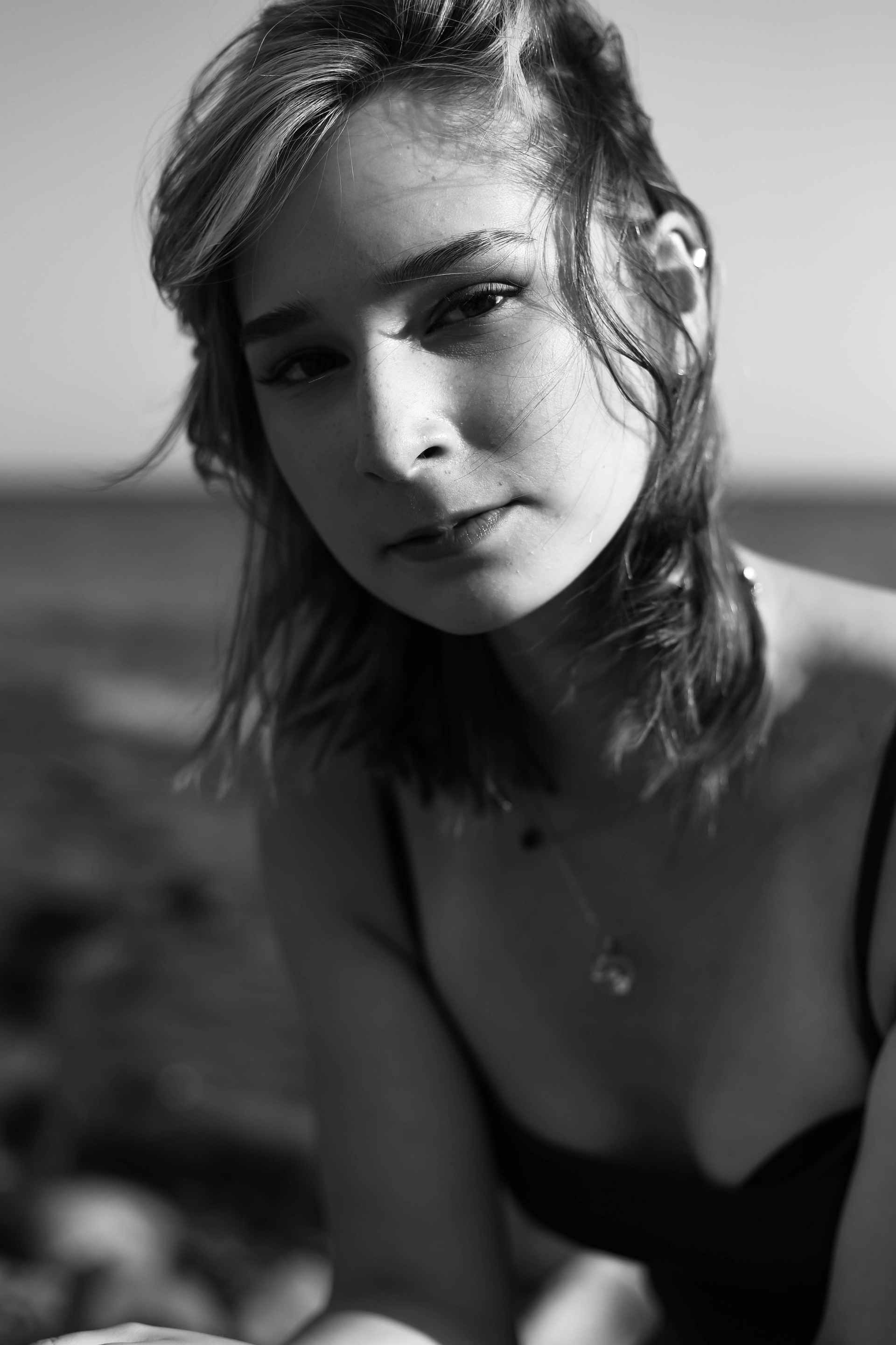 Вот он замирает на мгновение. Тишина в вихре. Она смотрит прямо в объектив, и сквозь пелену волос проступает не детская уязвимость, а сила древней жрицы, провидицы. В ее взгляде — вся хрупкость и вся стойкость юности. Она казалась одновременно потерянной и нашедшей себя здесь, на этом каменном пляже, где время остановилось.